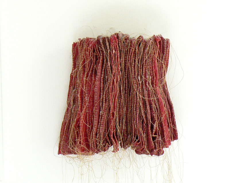 muslin, beetroot, wax & fishing line